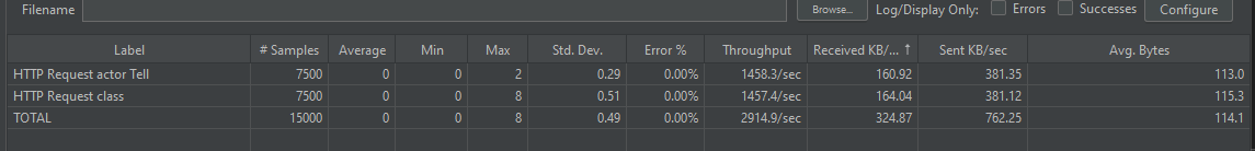 In previous post an actor was benchmarked against a standard class, and for a single user there was almost no diffrence in performance, but with multiple issues a class run in to a concurrent access problems, so the performance dropped more than 10prc and we got some not processed requests ended with 500.